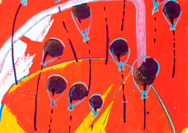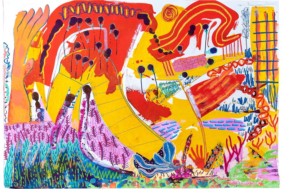 Corante líquido, giz pastel, caneta tipo marcador, lápis multicolorido, tinta acrílica, grafite sobre papel Montval Canson 300g